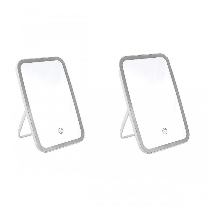 مرآة مكياج ليد مع حامل ، سطح مكتب ، قابل للطي ، مدمج ، أبيض ، مربع ، سفر ، مستحضرات تجميل ، 3 ألوان فاتحة ، يمكن الاختيار